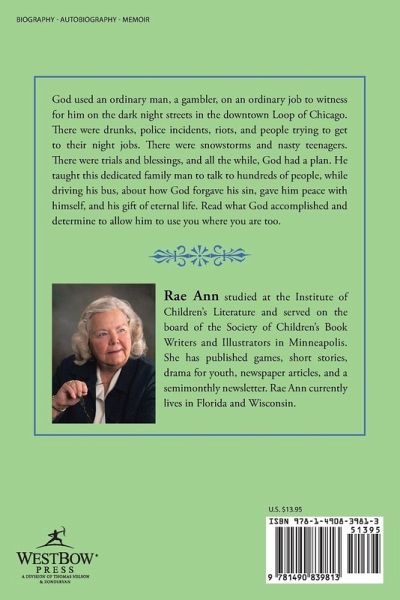 God used an ordinary man, a gambler, on an ordinary job to witness for him on the dark night streets in the downtown Loop of Chicago. There were drunks, police incidents, riots, and people trying to get to their night jobs. There were snowstorms and nasty teenagers. There were trials and blessings, and all the while, God had a plan. He taught this dedicated family man to talk to hundreds of people, while driving his bus, about how God forgave his sin, gave him peace with himself, and his gift of eternal life. Read what God accomplished and determine to allow him to use you where you are too.