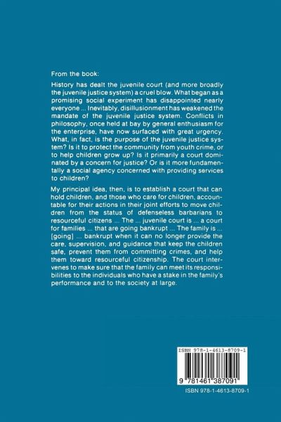 From the preface: "History has dealt the juvenile court (and, more broadly, the juvenile justice system) a cruel blow. What began as a promising social experiment has disappointed nearly everyone... Inevitably, disillusionment has weakened the mandate of the juvenile justice system. Conflicts in philosophy, once held at bay by general enthusiasm for the enterprise, have now surfaced with great urgency. What, in fact, is the purpose of the juvenile justice system? Is it to protect the community from youth crime, or to help children grow up? Is it primarily a court dominated by concerns for justice? Or, is it more fundamentally a social service agency concerned with structuring the environments of children? Is the court an independent institution that stands apart from the community and administers justice in a fair and impartial way? Or, is the court an agent of the community in the sense that it establishes norms of conduct and draws both public and private agencies to the tasks of socializing children?"