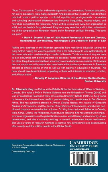 This book questions the conventional wisdom that education builds peace by exploring the ways in which ordinary schooling can contribute to intergroup conflict. Based on fieldwork and comparative historical analysis of Rwanda, it argues that from the colonial period to the genocide, schooling was a key instrument of the state in contributing to the construction, awareness, collectivization and inequality of ethnic groups in Rwanda - all factors that underlay conflict. The book further argues that today's post-genocide schools are dangerously replicating past trends. This book is the first to offer an in-depth study of education in Rwanda and to analyze its role in the genesis of conflict. The book demonstrates that to build peace, we cannot simply prescribe more education, but must understand who has access to schools, how schools are set up, and what and how they teach.