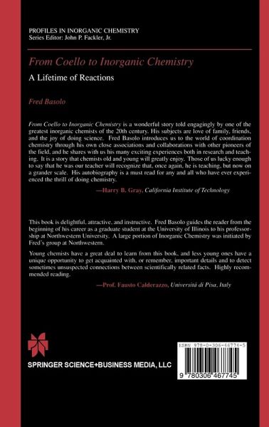 "This book is delightful, attractive, and instructive. Fred Basolo guides the reader from the beginning of his career as a graduate student at the University of Illinois to his professorship at Northwestern University. A large portion of inorganic chemistry was initiated by Fred's group at Northwestern. Young chemists have a great deal to learn from this book, and less young ones have a unique opportunity to get acquainted with, or remember, important details and to detect sometimes unsuspected connections between scientifically related facts. Highly recommended reading."