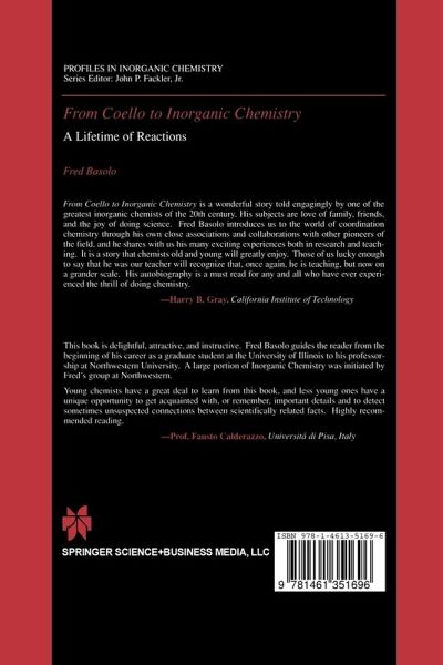 From boyhood in the coal-mining village of Coello, Illinois, to winning the Priestly Medal and becoming the president of the American Chemical Society, Professor Emeritus Fred Basolo of Northwestern University traces the intertwined development of his life, career, and the field of inorganic chemistry. With over a hundred photographs and dozens of structures and equations, From Coello to Inorganic Chemistry details the major innovations, travels, family life, and guests hosted while helping to build one of the world's leading inorganic chemistry departments from its humble beginnings at Northwestern University. Students and chemists with interests in bioinorganic chemistry, catalysis, nanoscience, new materials research, and organometallics can follow the emergence of inorganic chemistry as a rival to organic chemistry through the accomplishments of one of its most influential pioneers.