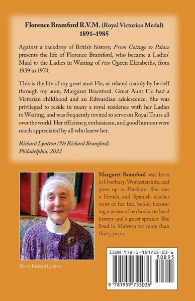 From Cottage to Palace Bonus is the companion and bonus material for From Cottage to Palace, Worcestershire & Malvern History Series Book 1. It contains a short sample of the text inside From Cottage to Palace and twenty pages of premium colour photographs of Florence Bramford's medals and royal security passes over some thirty years on royal tours around the world with two Queen Elizabeths.
