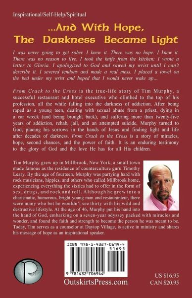 Coming out of the dark... This is the story of a restaurant and hotel executive's climb to the top while falling into the darkness of addiction, and what life in the fast lane has to offer. After being raped as a young teen, attempted suicide, dealing with sexual abuse from a priest, death from a car wreck, the Drug Farm, countless broken relationships and twenty five years of addiction, rehabs and jails, he comes to God after a life of darkness and finds light in the hope of Jesus Christ. At forty-six he turns his life around and becomes the man that God had created him to be. The journey of…mehr