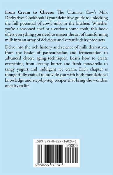 From Cream to Cheese: The Ultimate Cow's Milk Derivatives Cookbook is your definitive guide to unlocking the full potential of cow's milk in the kitchen. Whether you're a seasoned chef or a curious home cook, this book offers everything you need to master the art of transforming milk into an array of delicious and versatile dairy products. Delve into the rich history and science of milk derivatives, from the basics of pasteurization and fermentation to advanced cheese aging techniques. Learn how to create everything from creamy butter and fresh mozzarella to tangy yogurt and indulgent ice cream. Each chapter is thoughtfully crafted to provide you with both foundational knowledge and step-by-step recipes that bring the wonders of dairy to life.