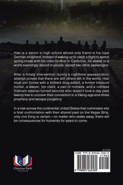 Hiwi is a senior in high school whose only friend is his loyal German shepherd. Instead of waking up to catch a flight to spend spring break with his older brother in California, he wakes to a world seemingly devoid of people, except two other passengers. After a timely intervention during a nighttime assassination attempt proves that there are still others left in the world, Hiwi must join forces with a brilliant drug addict, a former treasure hunter, a lawyer, his client, a pair of nomads, and a ruthless Vietnam veteran turned terrorist who doesn't look a day past twenty-five to uncover their connection to a Viking-age end-times prophecy and escape purgatory. In a trek across the continental United States that culminates into a final confrontation with their shared past on the Vegas Strip, only one thing is certain--no matter who walks away, there will be consequences for humanity for years to come.