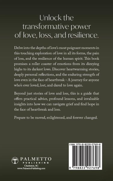 Unlock the transformative power of love, loss, and resilience. Delve into the depths of love's most poignant moments in this touching exploration of love in all its forms, the pain of loss, and the resilience of the human spirit. This book promises a roller coaster of emotions from its dizzying highs to its darkest lows. Discover heartwarming stories, deeply personal reflections, and the enduring strength of love even in the face of heartbreak - A journey for anyone who's ever loved, lost, and dared to love again. Beyond just stories of love and loss, this is a guide that offers practical advice, profound lessons, and invaluable insights into how we can navigate grief and find hope in the face of heartbreak and loss. Prepare to be moved, enlightened, and forever changed.