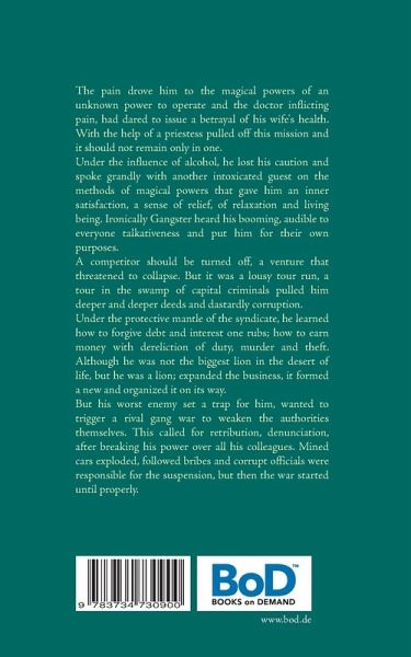 The pain drove him to the magical powers of an unknown power to operate and the doctor inflicting pain, had dared to issue a betrayal of his wife's health. With the help of a priestess pulled off this mission and it should not remain only in one. Under the influence of alcohol, he lost his caution and spoke grandly with another intoxicated guest on the methods of magical powers that gave him an inner satisfaction, a sense of relief, of relaxation and living being. Ironically Gangster heard his booming, audible to everyone talkativeness and put him for their own purposes. A competitor should be turned off, a venture that threatened to collapse. But it was a lousy tour run, a tour in the swamp of capital criminals pulled him deeper and deeper deeds and dastardly corruption. Under the protective mantle of the syndicate, he learned how to forgive debt and interest one rubs; how to earn money with dereliction of duty, murder and theft. Although he was not the biggest lion in the desert of life, but he was a lion; expanded the business, it formed a new and organized it on its way. But his worst enemy set a trap for him, wanted to trigger a rival gang war to weaken the authorities themselves. This called for retribution, denunciation, after breaking his power over all his colleagues. Mined cars exploded, followed bribes and corrupt officials were responsible for the suspension, but then the war started until properly.