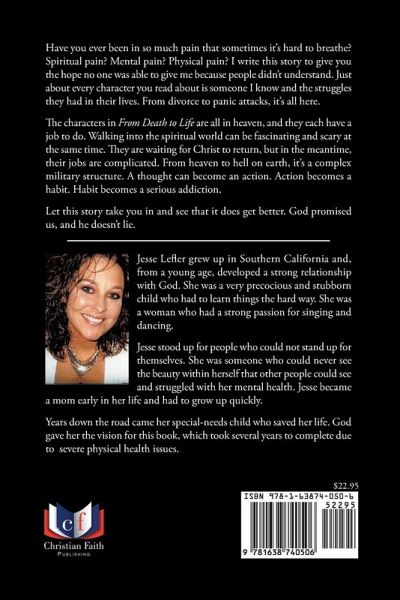 Have you ever been in so much pain that sometimes it's hard to breathe? Spiritual pain? Mental pain? Physical pain? I write this story to give you the hope no one was able to give me because people didn't understand. Just about every character you read about is someone I know and the struggles they had in their lives. From divorce to panic attacks, it's all here. The characters in From Death to Life are all in heaven, and they each have a job to do. Walking into the spiritual world can be fascinating and scary at the same time. They are waiting for Christ to return, but in the meantime, their jobs are complicated. From heaven to hell on earth, it's a complex military structure. A thought can become an action. Action becomes a habit. Habit becomes a serious addiction. Let this story take you in and see that it does get better. God promised us, and he doesn't lie.