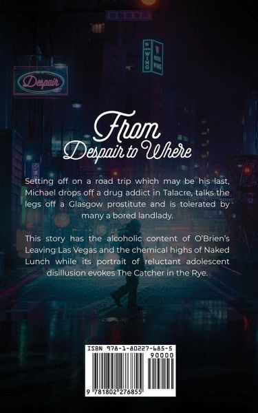 Setting off on a road trip which may be his last, Michael drops off a drug addict in Talacre, talks the legs off a Glasgow prostitute and is tolerated by many a bored landlady. This story has the alcoholic content of O'Brien's Leaving Las Vegas and the chemical highs of Naked Lunch while its portrait of reluctant adolescent disillusion evokes The Catcher in the Rye.