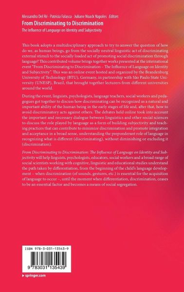 From Discriminating to Discrimination: The Influence of Language on Identity and Subjectivity will help linguists, psychologists, educators, social workers and a broad range of social scientists working with cognitive, linguistic and educational studies understand the path taken by differentiation, from the beginning of the child's language development - when discrimination (of sounds, gestures, etc.) is essential for the acquisition of language to occur -, until the moment when differentiation, discrimination, ceases to be an essential factor and becomes a means of social segregation.