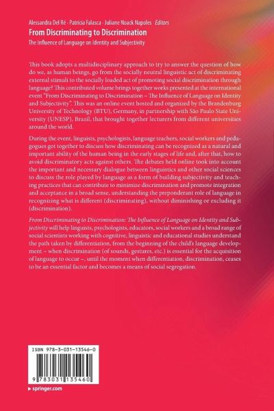 From Discriminating to Discrimination: The Influence of Language on Identity and Subjectivity will help linguists, psychologists, educators, social workers and a broad range of social scientists working with cognitive, linguistic and educational studies understand the path taken by differentiation, from the beginning of the child's language development - when discrimination (of sounds, gestures, etc.) is essential for the acquisition of language to occur -, until the moment when differentiation, discrimination, ceases to be an essential factor and becomes a means of social segregation.