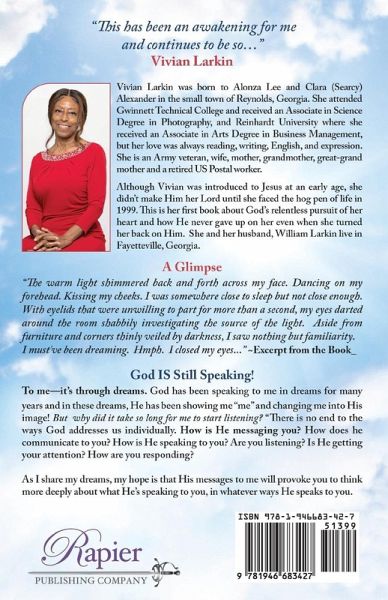 Author Vivian Larkin shares her story about how God speaks to her through dreams and visions. She tells her testimony of God speaking to her in dreams for many years. In these dreams, He has been showing Vivian "Vivian." "But why did it take so long for me to start listening?" she asked herself as she went through the metamorphosis of God's hand on her life. Little did she understand that God was changing Vivian into His image through these dreams! In her book, she reveals why she took so long to respond to what God was sharing with her about herself. After reading "From Dreams to Awakening!"…mehr