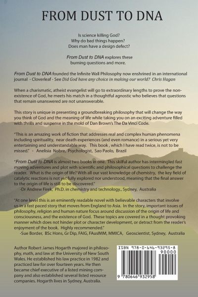 From Dust to DNA is an exciting adventure story revolving around the conflict between nonbelievers and believers in God. Sir Ernest Everleigh is on a quest to disprove God's existence. He's an Oxford University lecturer with a cult-like following of students who rally to the atheistic cause through his philosophy course and campus debates. Sir Ernest has several projects in the works that depend on backing from very powerful people, including an expedition to Afghanistan to procure a mysterious relic-at whatever the cost. John Rowntree may be agnostic, but he'd been teaching a religious knowledge class at an English school, until he was fired for defying the ban on religious teaching instituted by a government committee headed by Sir Ernest. When John enrolls in Sir Ernest's course, he soon finds himself engaged in a stimulating debate that brings out a new philosophy on the origins of life and models of God. John also ends up joining the perilous pursuit of the enigmatic relic, an adventure that is a key part of Sir Ernest's ambitious plan for total victory. Plenty of action and intrigue make From Dust to DNA a suspense thriller that offers mind-expanding insights that could change the way you think about the meaning of life and your model of God.