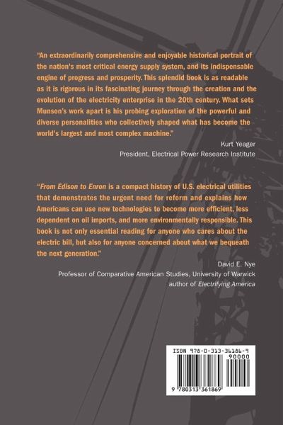 The blackout of 2003 illuminated just how dependent America is on electricity. It was not just that some 50 million people in eight states and Ontario were cut off from their televisions, microwaves, ATMs, and email. Without the electrical juice to keep their sockets alive, factory managers were forced to close production lines, city managers shut down water deliveries, grocery store clerks watched their frozen inventory slowly melt away. Economists estimated that the blackout cost Americans $5 billion even as energy analysts were predicting that a similar blackout could happen again. The catastrophe forced us to marvel at the unusual ability of sub-microscopic particles to move like waves inside a wire and cause bulbs to glow. It highlighted the complex requirements for managing the massive generators, transformers, transmission lines, and switch boxes needed to tap and deliver flowing electrons. It encouraged us to recognize the profound impact of electricity on all aspects of commerce and culture. Such events as the blackout, the Enron debacle, and the California brownouts also reveal the cracks in a 100-year-old industry structure that have been building ever since Thomas Edison, George Westinghouse, and their contemporaries first managed to harness electricity and make it available to the masses, and tycoons, such as Sam Insull and George Norris, began to concentrate financial control and political influence. From Edison to Enron traces the controversial history of this $210 billion industry-the nation's largest-showcasing the key individuals, technological innovations, corporate machinations, and political battles that have been waged over its domination. Munson maintains that today's technological and regulatory infrastructure, as a function of its history, is a relic that has long outlived its usefulness; he points out that two-thirds of the fuel burned to generate electricity is lost, that Americans pay roughly $100 billion too much each year for heat and power, and that environmentally unfriendly generators are the nation's largest polluters. Meanwhile, innovations in technology and business models are being blocked by entrenched monopolies. Ultimately, Munson argues that current policies and practices, including those favored by the Bush Administration, are preventing entrepreneurs from producing more efficient, healthy, and sustainable power supplies. Moreover, he presents an agenda for business and policy reforms that will stimulate economic development in the United States and around the world.