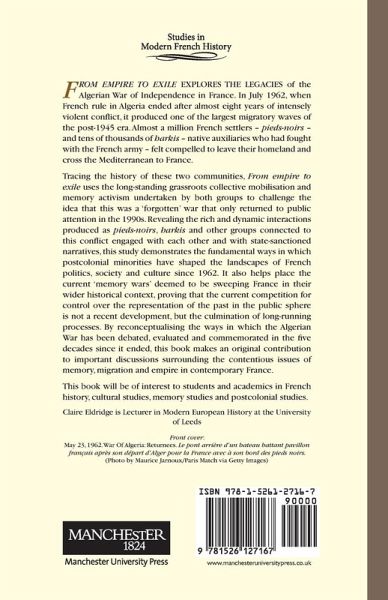 This book explores the memory of the war of independence in France as viewed by the former European settlers (pieds-noirs) and the harkis, those Algerians who worked for the French security forces. It examines how the memorial dynamics of the two groups are related both to each other and to other memories of the war.