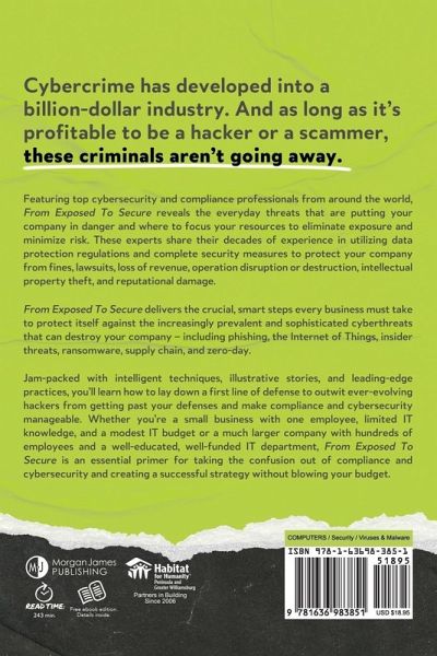 From Exposed To Secure reveals the everyday threats that are putting your company in danger and where to focus your resources to eliminate exposure and minimize risk. Top cybersecurity and compliance professionals from around the world share their decades of experience in utilizing data protection regulations and complete security measures to protect your company from fines, lawsuits, loss of revenue, operation disruption or destruction, intellectual property theft, and reputational damage. From Exposed To Secure delivers the crucial, smart steps every business must take to protect itself against the increasingly prevalent and sophisticated cyberthreats that can destroy your company - including phishing, the Internet of Things, insider threats, ransomware, supply chain, and zero-day.