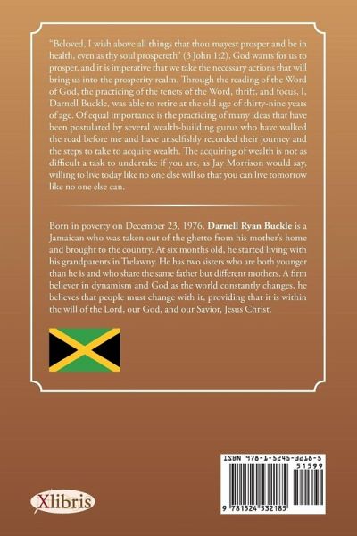 "Beloved, I wish above all things that thou mayest prosper and be in health, even as thy soul prospereth" (3 John 1:2). God wants for us to prosper, and it is imperative that we take the necessary actions that will bring us into the prosperity realm. Through the reading of the Word of God, the practicing of the tenets of the Word, thrift, and focus, I, Darnell Buckle, was able to retire at the old age of thirty-nine years of age. Of equal importance is the practicing of many ideas that have been postulated by several wealth-building gurus who have walked the road before me and have unselfishly recorded their journey and the steps to take to acquire wealth. The acquiring of wealth is not as difficult a task to undertake if you are, as Jay Morrison would say, willing to live today like no one else will so that you can live tomorrow like no one else can.