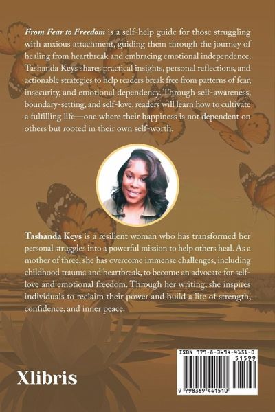 From Fear to Freedom is a self-help guide for those struggling with anxious attachment, guiding them through the journey of healing from heartbreak and embracing emotional independence. Tashanda Keys shares practical insights, personal reflections, and actionable strategies to help readers break free from patterns of fear, insecurity, and emotional dependency. Through self-awareness, boundary-setting, and self-love, readers will learn how to cultivate a fulfilling life-one where their happiness is not dependent on others but rooted in their own self-worth.