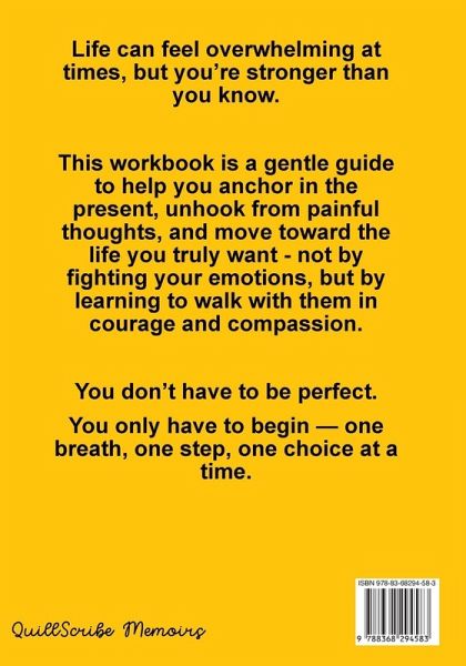 From Feelings to Freedom is a guided workbook that helps adults and teens navigate thoughts, strengthen emotional resilience, and create a purposeful life-one doable step at a time. Life inevitably brings uncertainty, inner storms, and painful emotions. Instead of fighting those experiences, this workbook shows you how to meet them with curiosity, compassion, and strength. Through clear explanations, mindful reflections, and hands-on worksheets, you will learn toanchor yourself when emotions feel overwhelming, notice and unhook from unhelpful thoughts, clarify the personal values that make life meaningful, and take steady, committed action toward what truly matters. Each chapter builds gently on the last, offering tools you can start using today:Five-minute mindfulness practices to ground you in the present. Values-mapping pages to reveal what matters most. Action-planning templates that turn insight into real-world change. Progress trackers & reflection questions to monitor growth over time. Use From Feelings to Freedom on your own, with a friend, or alongside any personal-development program. Whether you're beginning your journey or deepening an existing practice, this workbook is a steady companion from struggle to strength, from fear to freedom.