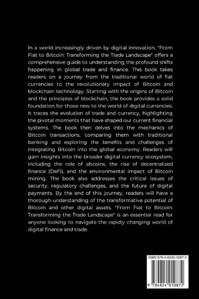 From Fiat to Bitcoin: Transforming the Trade Landscape explores the fascinating evolution of currency from traditional fiat systems to the groundbreaking world of cryptocurrencies. This insightful book delves into the historical, economic, and technological aspects of money, illustrating how digital currencies are revolutionizing the global trade landscape. With engaging narratives and expert analysis, the author takes readers on a journey through the origins of money, the rise and fall of fiat currencies, and the emergence of Bitcoin and other cryptocurrencies. The book examines the impact of blockchain technology, the decentralization of financial systems, and the potential future of digital assets in reshaping global commerce. Ideal for both financial enthusiasts and curious minds, From Fiat to Bitcoin offers a comprehensive and accessible guide to understanding the transformative power of digital currencies. Get ready to discover how the world of trade is being redefined, one Bitcoin at a time.