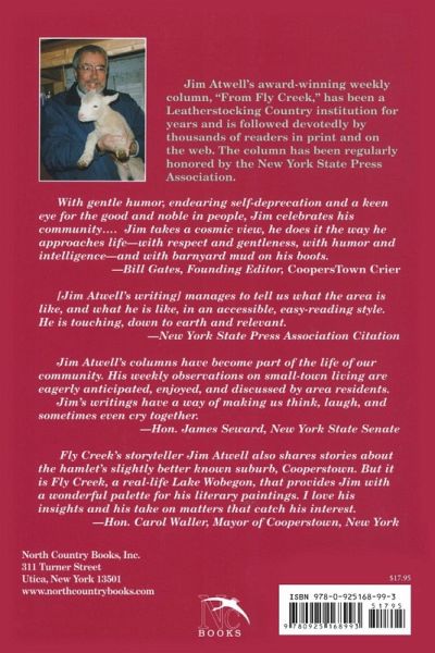 Jim Atwell's award-winning weekly column, "From Fly Creek," has been a Leatherstocking Country institution for years and is followed devotedly by thousands of readers in print and on the web. The column has been regularly honored by the New York State Press Association. With gentle humor, endearing self-deprecation and a keen eye for the good and noble in people, Jim celebrates his community. Jim takes a cosmic view, he does it the way he approaches life--with respect and gentleness, with humor and intelligence--and with barnyard mud on his boots.