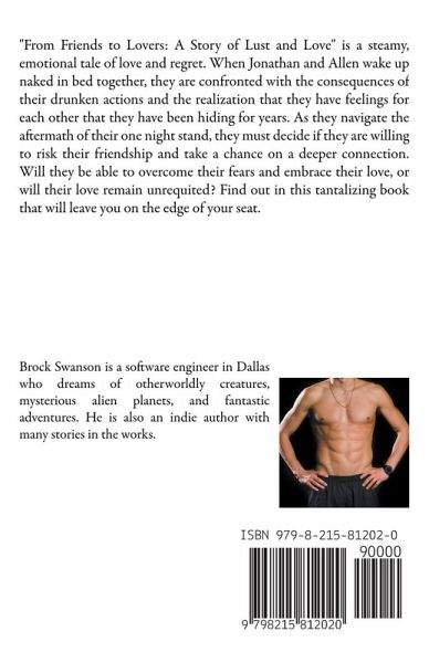 "From Friends to Lovers: A Story of Lust and Love" is a steamy, emotional tale of love and regret. When Jonathan and Allen wake up naked in bed together, they are confronted with the consequences of their drunken actions and the realization that they have feelings for each other that they have been hiding for years. As they navigate the aftermath of their one night stand, they must decide if they are willing to risk their friendship and take a chance on a deeper connection. Will they be able to overcome their fears and embrace their love, or will their love remain unrequited? Find out in this tantalizing book that will leave you on the edge of your seat.