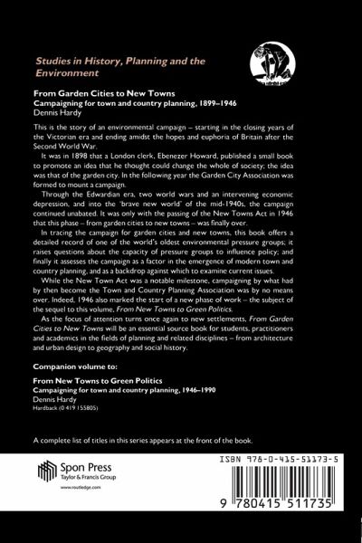 Preface. Acknowledgements. Abbreviations. Introduction. A context of change. Organization of the book. The origins of a pressure group. Formation of the Garden City Association. The idea of the garden city. 'A peaceful path to real reform'. Choosing the ground, 1899-1914. Garden cities and town planning. Organizing for pressure. The long campaign, 1914-1939. Campaigning and the great war. A glimpse of utopia. Coming of age. Town and country. North and south. The campaign reviewed. Corridors of power, 1939-1946. Vision of Jerusalem. Propaganda and politics. Britain in 1945. Evaluation. Looking back. Making policy. Shaping planning history. Appendix: Main events from the formation of the Garden City Association to the New Town Act. Bibliography. Index.