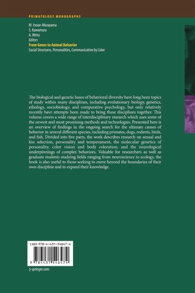 The biological and genetic bases of behavioral diversity have long been topics of study within many disciplines, including evolutionary biology, genetics, ethology, sociobiology, and comparative psychology, but only relatively recently have attempts been made to bring these different approaches together. This volume covers a wide range of interdisciplinary research which uses some of the newest and most promising methods and technologies. Presented here is an overview of findings in the ongoing search for the ultimate causes of behavior in several different species, including primates, dogs, rodents, birds, and fish. Divided into five parts, the work describes research on sexual and kin selection, personality and temperament, molecular genetics of personality, color vision and body coloration, and the neurological underpinnings of complex behaviors. Valuable for researchers as well as graduate students in a wide range of fields from neuroscience to ecology, the book is also useful to those seeking to move beyond the boundaries of their own discipline and to expand their knowledge.