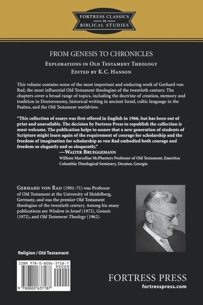 This volume contains some of the most important and enduring work of Gerhard von Rad, the most influential Old Testament theologian of the twentieth century. The chapters cover a broad range of topics, including the doctrine of creation, memory and tradition in Deuteronomy, historical writing in ancient Israel, cultic language in the Psalms, and the Old Testament worldview.