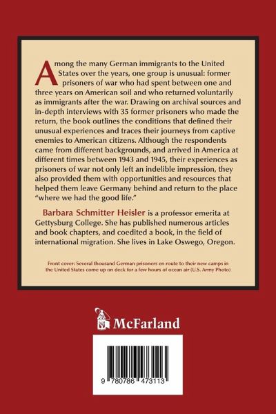 Among the many German immigrants to the United States over the years, one group is unusual: former prisoners of war who had spent between one and three years on American soil and who returned voluntarily as immigrants after the war. Drawing on archival sources and in-depth interviews with 35 former prisoners who made the return, the book outlines the conditions that defined their unusual experiences and traces their journeys from captive enemies to American citizens. Although the respondents came from different backgrounds, and arrived in America at different times between 1943 and 1945, their experiences as prisoners of war not only left an indelible impression, they also provided them with opportunities and resources that helped them leave Germany behind and return to the place "where we had the good life."