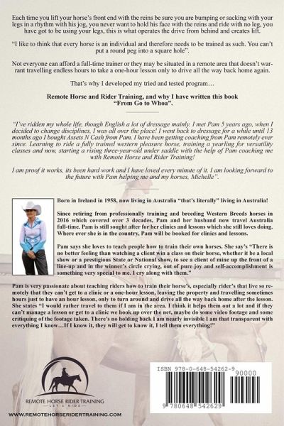 From Go To Whoa - Training Your Own Horse. This book will give you the tools to train your horse at home. Learn many of the tricks of the trade from trainer Pam Neal, professional horse trainer, rider coach and breeder for over 3 decades. You will begin reading how important it is to ensure you find the right horse to fit your needs with tips on making it easier on you to accomplish this. Working with and prepping your weanlings and yearlings for show competition, the more mature halter horse and how to feed them and keep them healthy. Learn how to train your horse from a very early age to float load, something that will stick with them for the rest of their lives. Exercises in the round pen. Breaking-in and riding a green broke horse. Which exercises Pam uses from the beginning of her training all the way through to the finished horse.