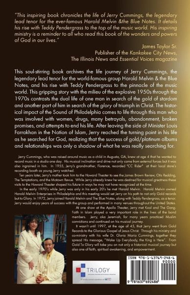 "This inspiring book chronicles the life of Jerry Cummings, the legendary lead tenor for the ever-famous Harold Melvin &the Blue Notes. It details his rise with Teddy Pendergrass to the top of the music world. His inspiring ministry is a reminder to all who read this book of the wonders and powers of God in our lives." James Taylor Sr. Publisher of the Kankakee City News, The Illinois News and Essential Voices magazine This soul-stirring book archives the life journey of Jerry Cummings, the legendary lead tenor for the world-famous group Harold Melvin & the Blue Notes, and his rise with Teddy Pendergrass to the pinnacle of the music world. This gripping story with the milieu of the explosive 1950s through the 1970s contrasts the dual life of one man in search of the gold of stardom and another part of him in search of the glory of triumph in Christ. The historical impact of the Sound of Philadelphia comes to life through this man who was involved with women, drugs, many betrayals, abandonment, broken promises, and attempts to end his life. After leaving the side of Minister Louis Farrakhan in the Nation of Islam, Jerry reached the turning point in his life as he searched for God, realizing that the success of gold/platinum albums and relationships was only a shadow of what he was really searching for.