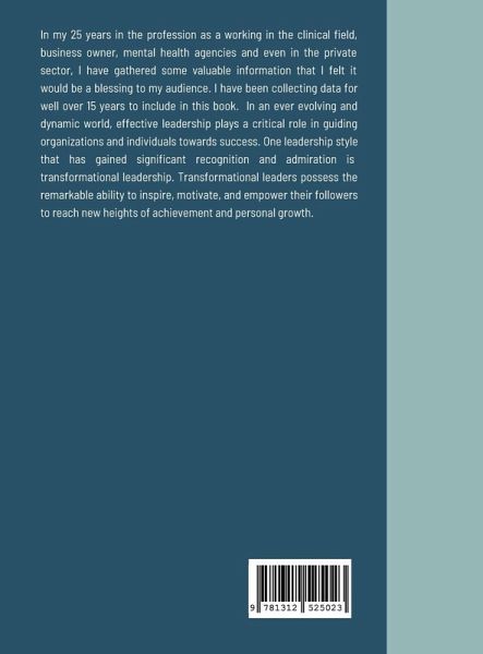 In my 25 years in the profession as working in the clinical field, business owner, mental health agencies and even in the private sector, I have gathered some valuable information that I felt it would be a blessing to my audience. I have been collecting data for well over 15 years to include in this book. In an ever evolving and dynamic world, effective leadership plays a critical role in guiding organizations and individuals towards success. One leadership style that has gained significant recognition and admiration is transformational leadership. Transformational leaders possess the remarkable ability to inspire, motivate, and empower their followers to reach new heights of achievement and personal growth.