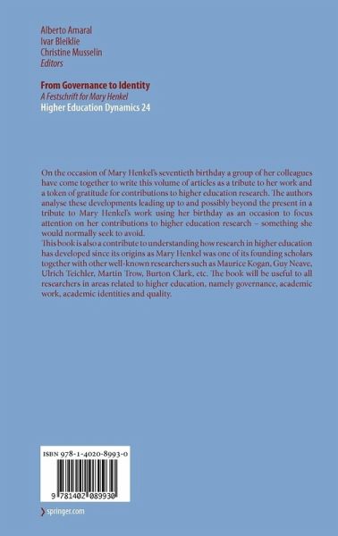 This book is also a contribute to understanding how research in higher education has developed since its origins as Mary Henkel was one of its founding scholars together with other well-known researchers such as Maurice Kogan, Guy Neave, Ulrich Teichler, Martin Trow, Burton Clark, etc. The book will be useful to all researchers in areas related to higher education, namely governance, academic work, academic identities and quality.