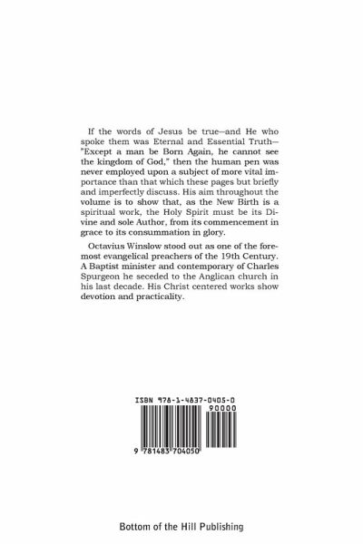 If the words of Jesus be true¿and He who spoke them was Eternal and Essential Truth¿"Except a man be Born Again, he cannot see the kingdom of God," then the human pen was never employed upon a subject of more vital importance than that which these pages but briefly and imperfectly discuss. His aim throughout the volume is to show that, as the New Birth is a spiritual work, the Holy Spirit must be its Divine and sole Author, from its commencement in grace to its consummation in glory. Octavius Winslow stood out as one of the foremost evangelical preachers of the 19th Century. A Baptist minister and contemporary of Charles Spurgeon he seceded to the Anglican church in his last decade. His Christ centered works show devotion and practicality.
