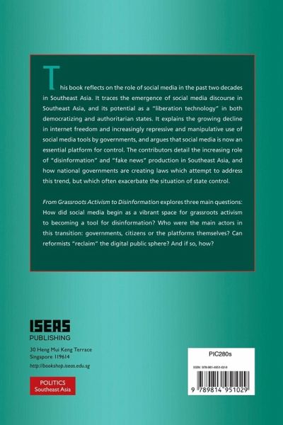 This book reflects on the role of social media in the past two decades in Southeast Asia. It traces the emergence of social media discourse in Southeast Asia, and its potential as a "liberation technology" in both democratizing and authoritarian states. It explains the growing decline in internet freedom and increasingly repressive and manipulative use of social media tools by governments, and argues that social media is now an essential platform for control. The contributors detail the increasing role of "disinformation" and "fake news" production in Southeast Asia, and how national governments are creating laws which attempt to address this trend, but which often exacerbate the situation of state control. From Grassroots Activism to Disinformation explores three main questions: How did social media begin as a vibrant space for grassroots activism to becoming a tool for disinformation? Who were the main actors in this transition: governments, citizens or the platforms themselves? Can reformists "reclaim" the digital public sphere? And if so, how?