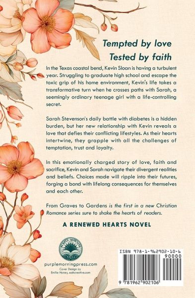 Tempted by love... Tested by faith... In the Texas coastal bend, Kevin Sloan is having a turbulent year. Struggling to graduate high school and escape the toxic grip of his home environment, Kevin's life takes a transformative turn when he crosses paths with Sarah, a seemingly ordinary teenage girl with a life-controlling secret. Sarah Stevenson's daily battle with diabetes is a hidden burden, but her new relationship with Kevin reveals a love that defies their conflicting lifestyles. As their hearts intertwine, they grapple with all the challenges of temptation, trust and loyalty. In this emotionally charged story of love, faith and sacrifice, Kevin and Sarah navigate their divergent realities and beliefs. Choices made will ripple into their futures, forging a bond with lifelong consequences for themselves and each other. From Graves to Gardens is the first in a new series sure to shake the hearts of readers, with special appeal to fans of Francine Rivers. *Renewed Hearts - Book One. A Young Adult Christian Romance Novel.*