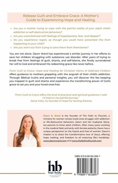 Release Guilt and Embrace Grace: A Mother's Guide to Experiencing Hope and Healing Are you a mother trying to cope with the painful reality of your adult child's addiction or self-destructive behaviors? Are you overwhelmed with feelings of hopelessness, fear, and despair? Do you experience regret, as though you could have prevented this from happening to your child? Are you worn out from trying to save them from themselves? You are not alone. Dawn Ward has experienced a similar journey in her efforts to save her children who were struggling with substance use disorder. After years of trying to break free from feelings of guilt, shame, and self-blame, she finally surrendered her will to God and embraced His redeeming grace like never before. From Guilt to Grace: Hope and Healing for Christian Moms of Addicted Children offers guidance to mothers grappling with the anguish of their child's addiction. Through Biblical truths and personal insights, you will discover the lies keeping you trapped in guilt and shame and experience the transforming power of God's grace to set you and your loved ones free. "From Guilt to Grace offers the kind of practical and spiritual guidance I wish I'd had on my painful journey." - Dena Yohe, Co-founder of Hope for Hurting Parents