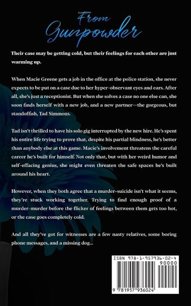 Their case may be getting cold, but their feelings for each other are just warming up. When Macie Greene gets a job in the office at the police station, she never expects to be put on a case due to her hyper-observant eyes and ears. After all, she's just a receptionist. But when she solves a case no one else can, she soon finds herself with a new job, and a new partner-the gorgeous, but standoffish, Tad Simmons. Tad isn't thrilled to have his solo gig interrupted by the new hire. He's spent his entire life trying to prove that, despite his partial blindness, he's better than anybody else at this game. Macie's involvement threatens the careful career he's built for himself. Not only that, but with her weird humor and self-effacing genius, she might even threaten the safe spaces he's built around his heart. However, when they both agree that a murder-suicide isn't what it seems, they're stuck working together. Trying to find enough proof of a murder-murder before the flicker of feelings between them gets too hot, or the case goes completely cold. And all they've got for witnesses are a few nasty relatives, some boring phone messages, and a missing dog...