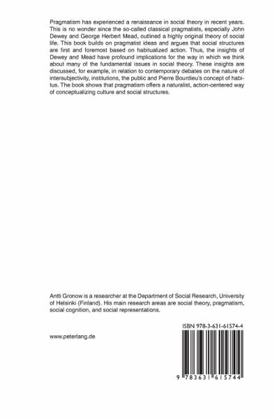 Pragmatism has experienced a renaissance in social theory in recent years. This is no wonder since the so-called classical pragmatists, especially John Dewey and George Herbert Mead, outlined a highly original theory of social life. This book builds on pragmatist ideas and argues that social structures are first and foremost based on habitualized action. Thus, the insights of Dewey and Mead have profound implications for the way in which we think about many of the fundamental issues in social theory. These insights are discussed, for example, in relation to contemporary debates on the nature of intersubjectivity, institutions, the public and Pierre Bourdieu's concept of habitus. The book shows that pragmatism offers a naturalist, action-centered way of conceptualizing culture and social structures.
