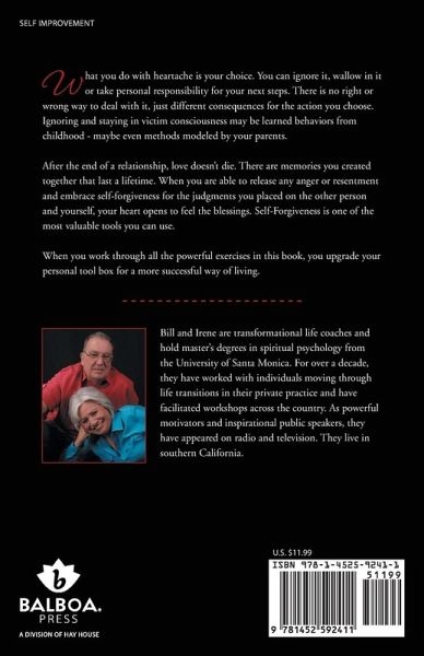 What you do with heartache is your choice. You can ignore it, wallow in it or take personal responsibility for your next steps. There is no right or wrong way to deal with it, just different consequences for the action you choose. Ignoring and staying in victim consciousness may be learned behaviors from childhood - maybe even methods modeled by your parents. After the end of a relationship, love doesn't die. There are memories you created together that last a lifetime. When you are able to release any anger or resentment and embrace self-forgiveness for the judgments you placed on the other person and yourself, your heart opens to feel the blessings. Self-Forgiveness is one of the most valuable tools you can use. When you work through all the powerful exercises in this book, you upgrade your personal tool box for a more successful way of living.