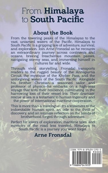 From Himalaya to South Pacific is an inspiring memoir of adventure, resilience, and exploration. Arne Fronsdal shares his extraordinary journey across continents-from crossing the Atlantic on a freighter to navigating the towering Himalayas, the rugged Andes, and the vast Pacific. More than a travelogue, this book is a testament to the thrill of discovery, the power of human spirit, and the deep connection between man and nature. Perfect for lovers of exploration, maritime tales, and true adventure stories.