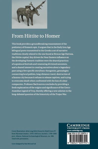 This book provides a groundbreaking reassessment of the prehistory of Homeric epic. It argues that in the Early Iron Age bilingual poets transmitted to the Greeks a set of narrative traditions closely related to the one found at Bronze-Age Hattusa, the Hittite capital. Key drivers for Near Eastern influence on the developing Homeric tradition were the shared practices of supralocal festivals and venerating divinized ancestors, and a shared interest in creating narratives about a legendary past using a few specific storylines: theogonies, genealogies connecting local polities, long-distance travel, destruction of a famous city because it refuses to release captives, and trying to overcome death when confronted with the loss of a dear companion. Professor Bachvarova concludes by providing a fresh explanation of the origins and significance of the Greco-Anatolian legend of Troy, thereby offering a new solution to the long-debated question of the historicity of the Trojan War.