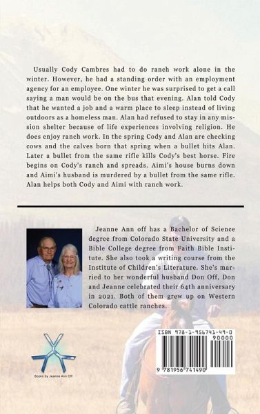 Usually, Cody Cambres had to do ranch work alone in the winter. However, he had a standing order with an employment agency for an employee. One winter he was surprised to get a call saying a man would be on the bus that evening. Alan told Cody that he wanted a job and a warm place to sleep instead of living outdoors as a homeless man. Alan had refused to stay in any mission shelter because of life experiences involving religion. He does enjoy ranch work. In the spring Cody and Alan are checking cows and the calves born that spring when a bullet hits Alan. Later a bullet from the same rifle kills Cody's best horse. Fire begins on Cody's ranch and spreads. Aimi's house burns down and Aimi's husband is murdered by a bullet from the same rifle. Alan helps both Cody and Aimi with ranch work.