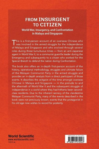This is a first-person account of an overseas Chinese who was involved in the armed struggle for the independence of Malaya and Singapore and who evolved through several roles during those tumultuous times - from an anti-Japanese agent in World War II, to a communist guerrilla leader during the Emergency and subsequently to a citizen who worked for the Special Branch to defend the nation during Confrontation. The book also offers an in-depth first-person account of the history, operational methodology, struggles and ultimate failure of the Malayan Communist Party in the armed struggle and provides an in-depth analysis from a direct participant of those events. It describes the zeitgeist of the time amongst overseas Chinese in Malaya and Singapore - in the prelude to and the aftermath of World War II and the subsequent struggle of independence in a world where they had hitherto been second-class residents. Due to the inherent secrecy of the clandestine Malayan Communist Party, many of the events described in the book were not previously known; events that the protagonist in his old age now wishes to record for posterity.