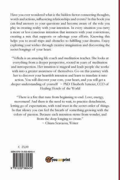 Have you ever wondered what is the hidden factor connecting thoughts, words and actions, influencing relationships and events? In this book you can find answers to your questions and become aware of the role you play in creating reality with your intention. In every situation you carry a more or less conscious intention that interacts with your convictions, creating a mix that supports or sabotage your efforts. Knowing this helps you to avoid traps and obstacles to fulfilling your dreams. Enjoy exploring your wishes through creative imagination and discovering the secret longings of your heart.