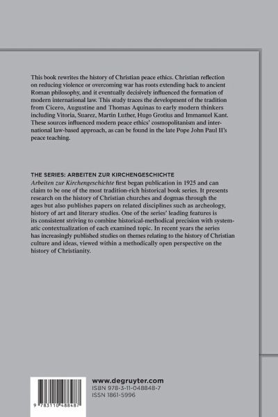 This book rewrites the history of Christian peace ethics. Christian reflection on reducing violence or overcoming war has roots in ancient Roman philosophy and eventually grew to influence modern international law. This historical overview begins with Cicero, the source of Christian authors like Augustine and Thomas Aquinas. It is highly debatable whether Augustine had a systematic interest in just war or whether his writings were used to develop a systematic just war teaching only by the later tradition. May Christians justifiably use force to overcome disorder and achieve peace? The book traces the classical debate from Thomas Aquinas to early modern-age thinkers like Vitoria, Suarez, Martin Luther, Hugo Grotius and Immanuel Kant. It highlights the diversity of the approaches of theologians, philosophers and lawyers. Modern cosmopolitianism and international law-thinking, it shows, are rooted in the Spanish Scholastics, where Grotius and Kant each found the inspiration to inaugurate a modern peace ethic. In the 20th century the tradition has taken aim not only at reducing violence and overcoming war but at developing a constructive ethic of peace building, as is reflected in Pope John Paul II's teaching.