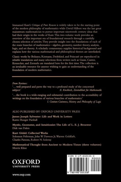 Immanuel Kant's Critique of Pure Reason is widely taken to be the starting point of the modern period of mathematics while David Hilbert was the last great mainstream mathematician to pursue important nineteenth century ideas. This two-volume work provides an overview of this important era of mathematical research through a carefully chosen selection of articles. They provide an insight into the foundations of each of the main branches of mathematics - algebra, geometry, number theory, analysis, logic, and set theory - with narratives to show how they are linked. Classic works by Bolzano, Riemann, Hamilton, Dedekind, and Poincare are reproduced in reliable translations and many selections from writers such as Gauss, Cantor, Kronecker, and Zermelo are here translated for the first time. The collection is an invaluable source for anyone wishing to gain an understanding of the foundation of modern mathematics.