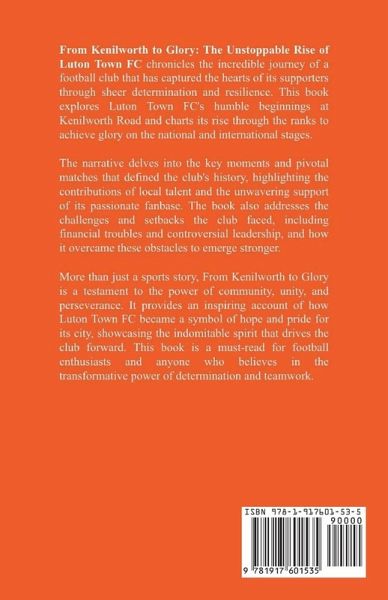 From Kenilworth to Glory: The Unstoppable Rise of Luton Town FC chronicles the incredible journey of a football club that has captured the hearts of its supporters through sheer determination and resilience. This book explores Luton Town FC's humble beginnings at Kenilworth Road and charts its rise through the ranks to achieve glory on the national and international stages. The narrative delves into the key moments and pivotal matches that defined the club's history, highlighting the contributions of local talent and the unwavering support of its passionate fanbase. The book also addresses the challenges and setbacks the club faced, including financial troubles and controversial leadership, and how it overcame these obstacles to emerge stronger. More than just a sports story, From Kenilworth to Glory is a testament to the power of community, unity, and perseverance. It provides an inspiring account of how Luton Town FC became a symbol of hope and pride for its city, showcasing the indomitable spirit that drives the club forward. This book is a must-read for football enthusiasts and anyone who believes in the transformative power of determination and teamwork.