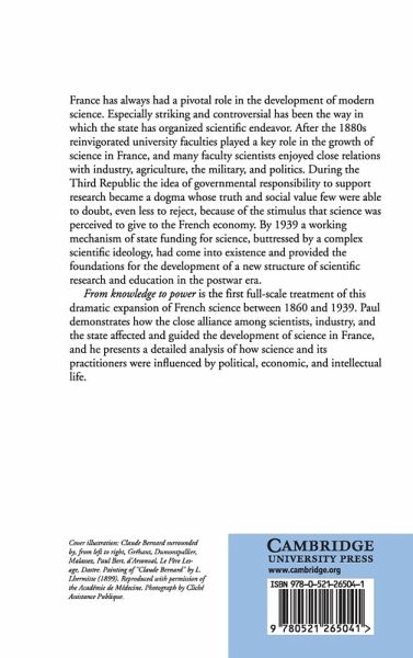 France has played a pivotal role in the development of modern science. Especially striking and controversial has been the way in which the state has organized scientific endeavor. After the 1880s reinvigorated university faculties played a key role in the growth of science in France, and many faculty scientists enjoyed close relations with industry, agriculture, the military, and politics. During the Third Republic the idea of governmental responsibility to support research became a dogma, due to the stimulus that science was perceived to give to the French economy. By 1939 a working mechanism of state funding for science, buttressed by a complex scientific ideology, had come into existence and provided the foundations for the development of a new structure of scientific research and education in the postwar era. From Knowledge to Power is the first full-scale treatment of this dramatic expansion of French science between 1860 and 1939.